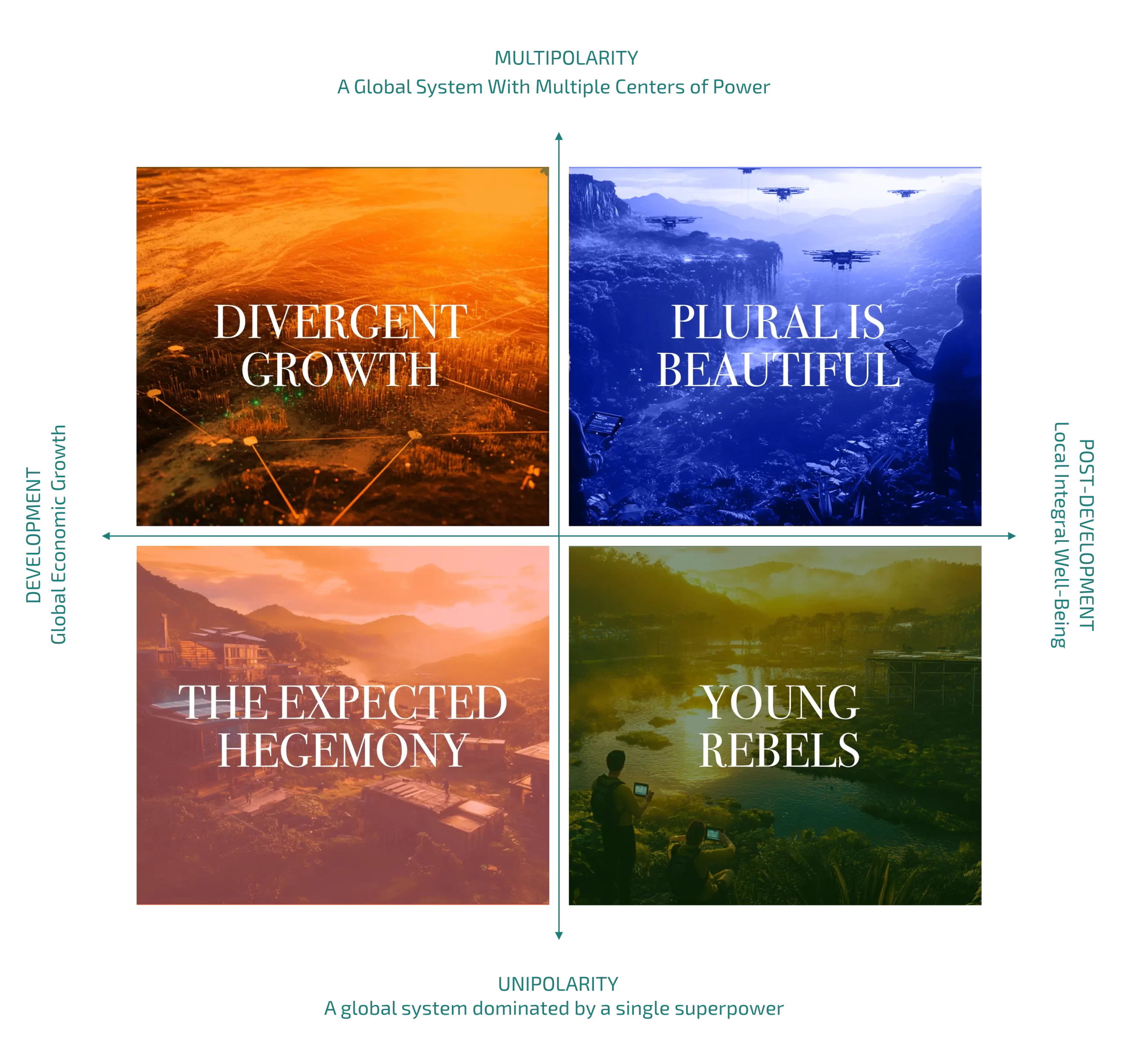 Diseñamos 4 escenarios que revelan caminos plausibles y riesgos críticos.